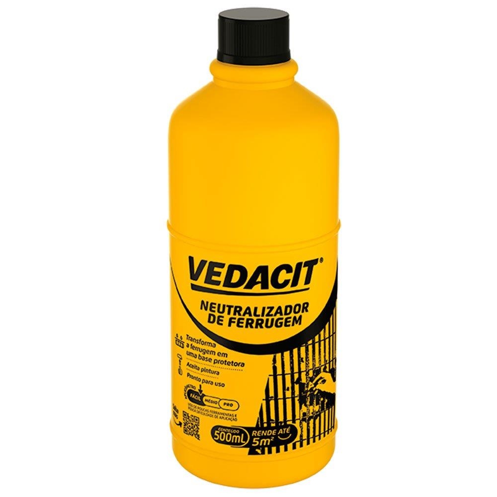 Neutralizador de Ferrugem Vedacit transforma a ferrugem em um eficiente fundo protetor, servindo como base para receber pinturas. Além de proporcionar ótima aderência da tinta, Neutralizador de Ferrugem Vedacit tem ação neutralizadora, o que dificulta o surgimento de ferrugem sob a pintura.