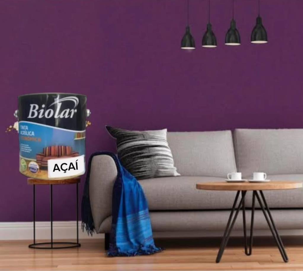 A TINTA ACRILICO AÇAI TEM O ACABAMENTO FOSCO É INDICADA PARA PINTURA DE AMBIENTES INTERNOS.