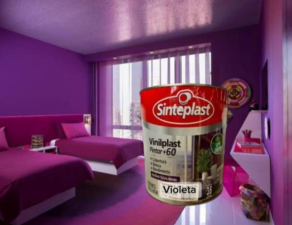 TINTA ACR FS VIOLETA, ACABAMENTO FOSCO, UMA EXCELENTE COBERTURA, MAIOR RENDIMENTO, FÁCIL APLICAÇÃO, ANTIMOFO, SECAGEM RÁPIDA, TEMOS VÁRIAS OPÇÕES DE CORES